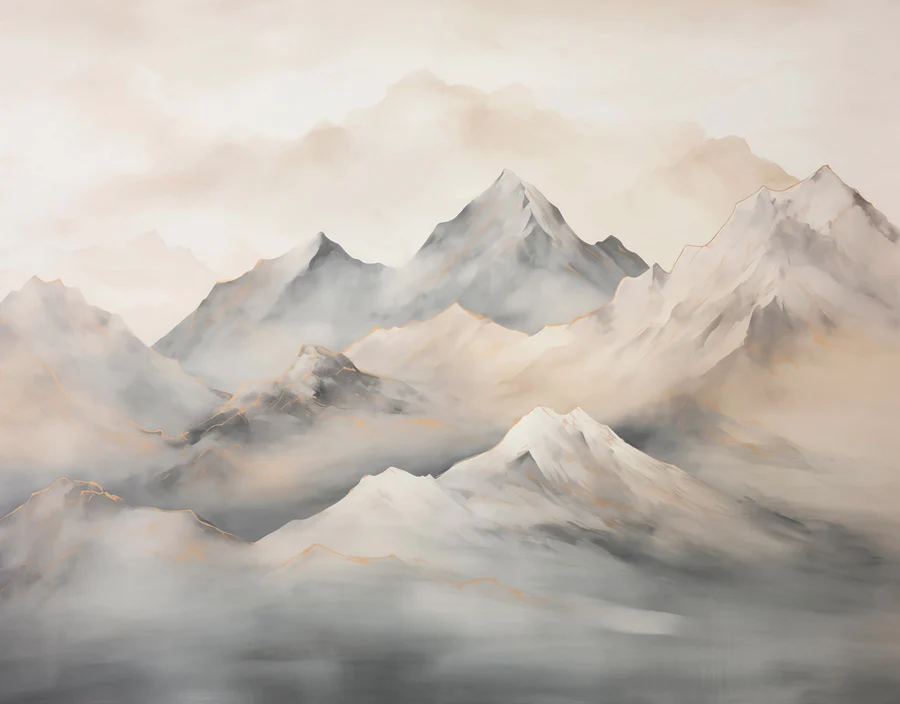 Wall murals Painting of mountains with clouds