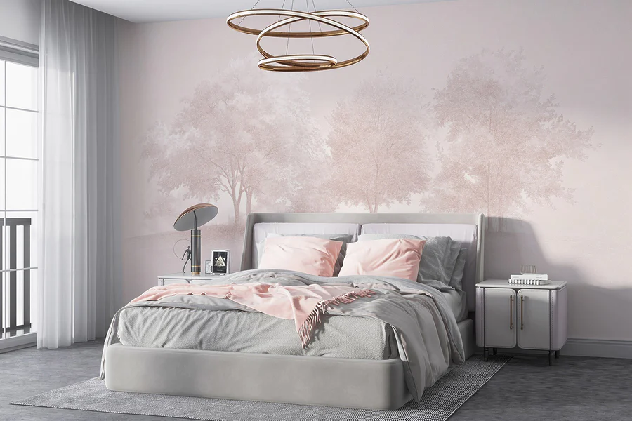 Transform a room with this enchanting mural of trees in a foggy area. Imagine stepping into a soft, dreamlike world where nature whispers its secrets. The delicate trees, draped in layers of mist, create a calming vibe that softens any space. Perfect for a cozy reading nook or a serene bedroom, this mural invites daydreams and gentle contemplation. Picture curling up with a warm drink, feeling as if you’re in a tranquil forest. It’s like bringing a slice of peaceful nature indoors, minus the bugs and muddy shoes! Perfect for anyone craving a calm retreat at home.