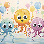 Wall murals Group of octopuses with balloons