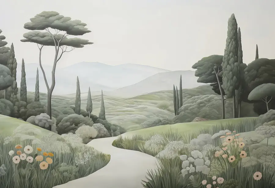 Transform any room with this enchanting wall mural of a serene landscape. Picture a winding path framed by elegant trees, inviting everyone to take a stroll right through your wall. It's like bringing a piece of nature indoors—perfect for daydreaming or just escaping the daily grind. The soft colors create a peaceful vibe; you might even forget that you’re in your living room. Imagine sipping coffee while gazing at your new view, feeling the stress melt away. It’s not just decor; it’s like having a tiny vacation every day!