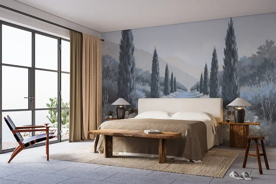 Transform your space into a tranquil haven with the "Wall Murals Landscape with Trees and Flowers." Imagine walking down a serene path flanked by graceful trees and delicate blooms, all painted in soft, soothing tones. This mural invites a sense of calm, as if you've stepped into a peaceful garden retreat. It makes a fabulous backdrop for conversations, lazy afternoons, or just enjoying a cup of coffee. Friends will admire the way it brings a bit of nature indoors, while you might find yourself daydreaming about wandering through that enchanting landscape. Perfect for any room that needs a hint of serenity—and let’s be honest, who couldn’t use that?
