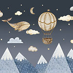 Wall murals Whale and hot air balloon in the sky