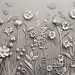 Wall murals A grey sculpture of flowers and plants