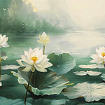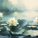 Wall murals Painting of white flowers and leaves in a lake