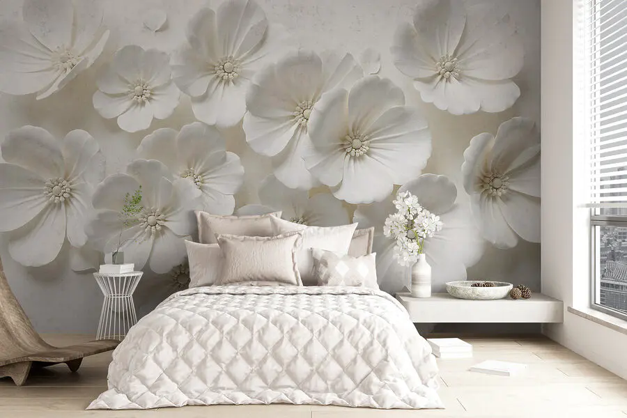13.87 €8.33 €Wall murals White wall with flowers and leaves