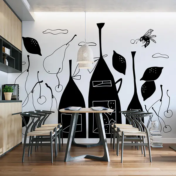 16.26 €8.13 €Wall mural Black and white drawing of bottles