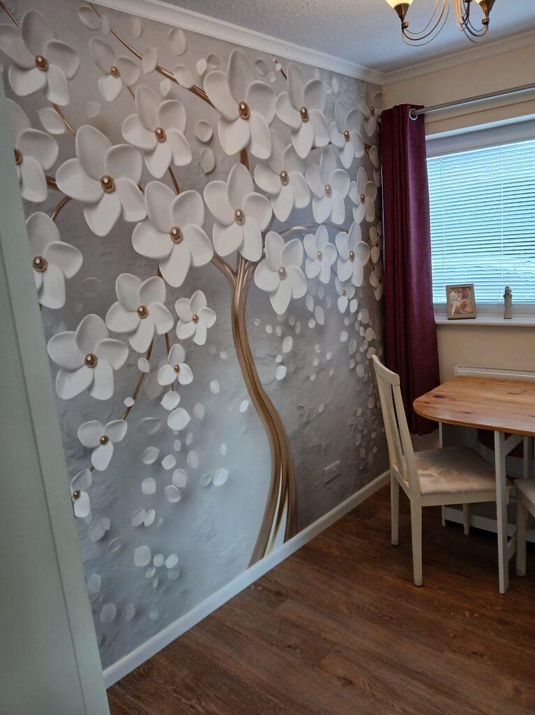 The wallpaper looks absolutely stunning—it’s even more impressive in person than in the photos. The delicate floral pattern brings a sense of calm and elegance to the room, and the colors are subtle and blend perfectly with the rest of the space. The quality is also top-notch—the material is sturdy, and the print is clear and aesthetically pleasing. Installation went smoothly, and the final result definitely makes the effort worthwhile. The wall has become the room’s main focal point and catches the eye of everyone who walks in. I highly recommend it—I’m very happy with my purchase!